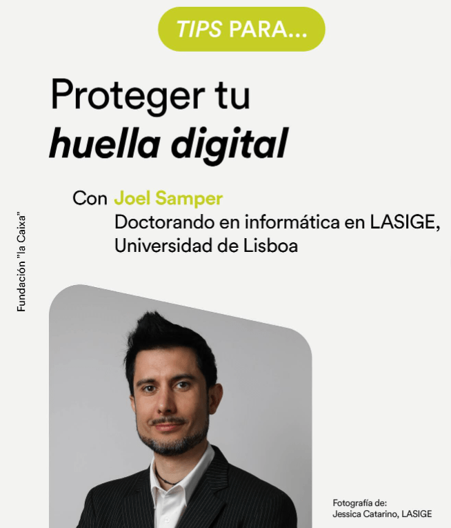 Joel Samper (Sam), researcher and PhD Student at LASIGE, has collaborated in a campaign of “la Caixa” Foundation, promoting tips to protect the digital footprint, on October 2025.