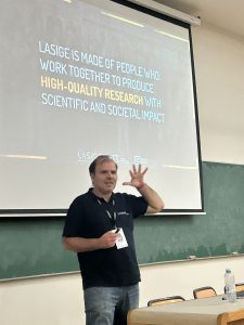 The event began with a few words of welcome from the LASIGE Executive Committee, Alysson Bessani, Tiago Guerreiro, and Cátia Pesquita, who also highlighted relevant information for the complete experience of the LASIGE scientific community.