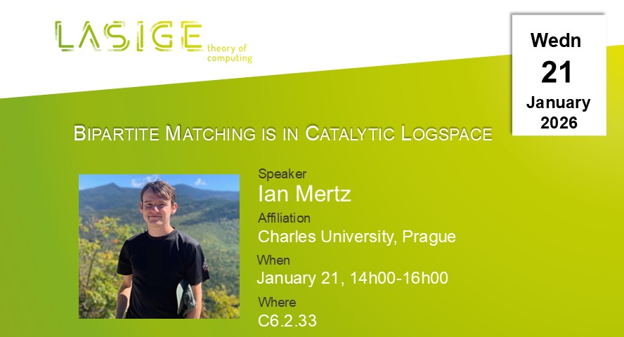 Abstract: Matching is a central problem in theoretical computer science, with a large body of work spanning the last five decades. However, understanding matching in the time-space bounded setting remains a longstanding open question, even in the presence of additional resources such as randomness or non-determinism.